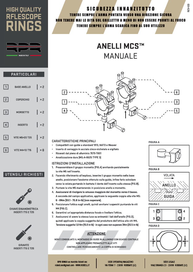 Grazie all’uso di leghe leggere di alto livello e alla sua modularità, il peso massimo di un set è contenuto in appena 170 grammi, rendendo gli anelli MCS un sistema di interfaccia ottica-arma adatto a qualsiasi esigenza.
